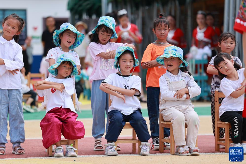 柏楊林街道的七星關(guān)區第三幼兒園,孩子們在表演節目(7月13日攝)。