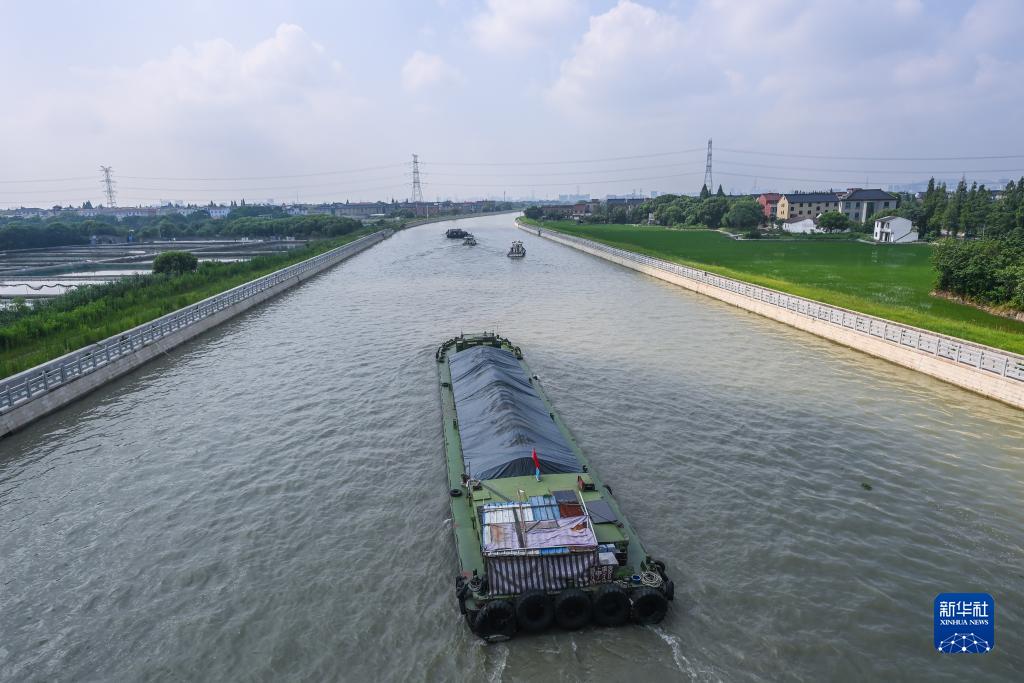 7月18日,首批通航貨船進(jìn)入京杭運河杭州段二通道駛往錢(qián)塘江。