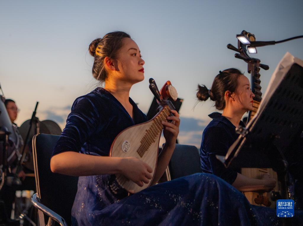 昆明市民族歌舞劇院民樂(lè )團的演奏家在開(kāi)幕式現場(chǎng)演奏(7月17日攝)。