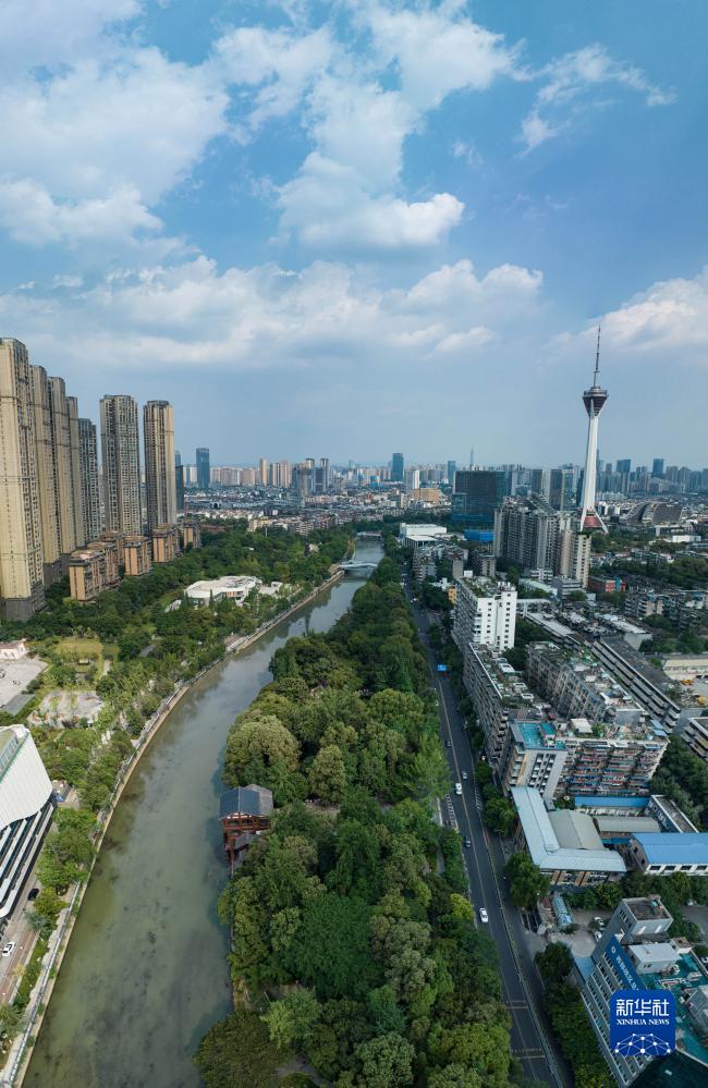 這是位于成都市府河邊的活水公園(無(wú)人機照片,6月23日攝)。