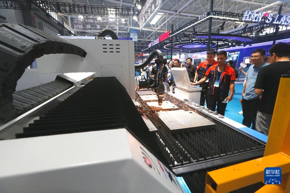 7月18日,參觀(guān)者在2023青島國際機床展覽會(huì )上了解激光切割設備。