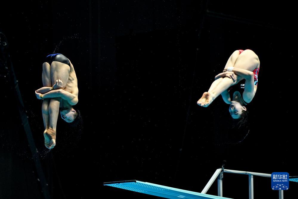 7月18日,中國選手司雅杰(右)/白鈺?shū)Q在混雙三米板比賽中。