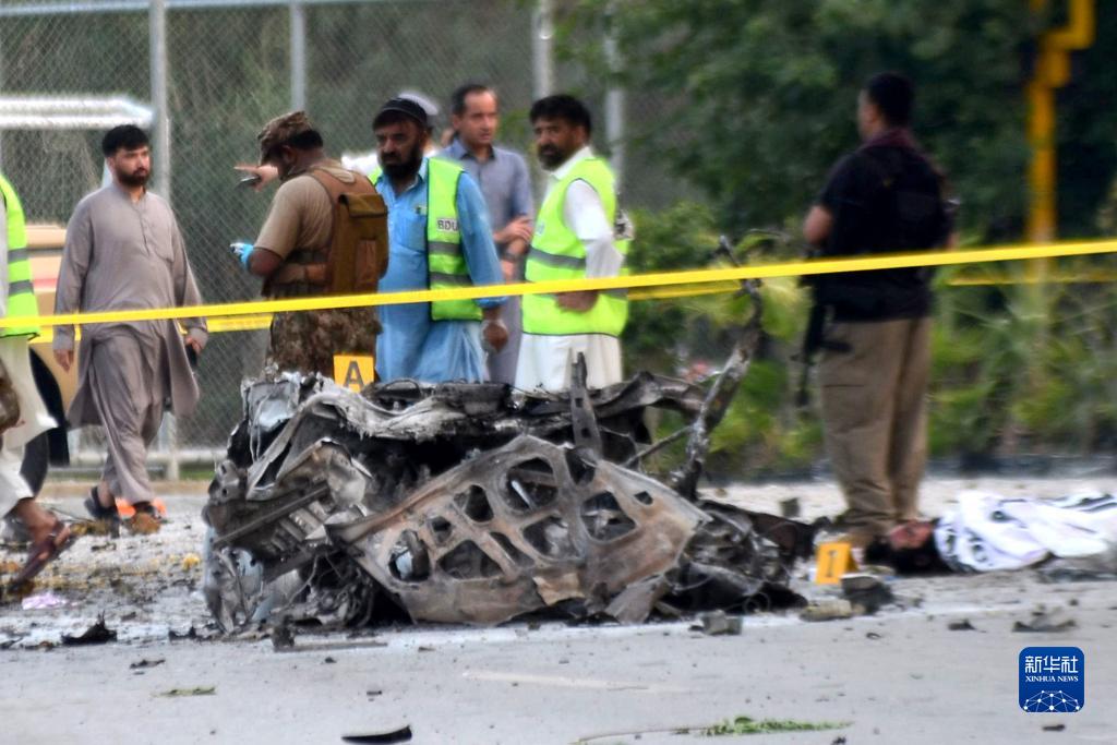 7月18日,安全人員在巴基斯坦白沙瓦市調查爆炸事件現場(chǎng)。