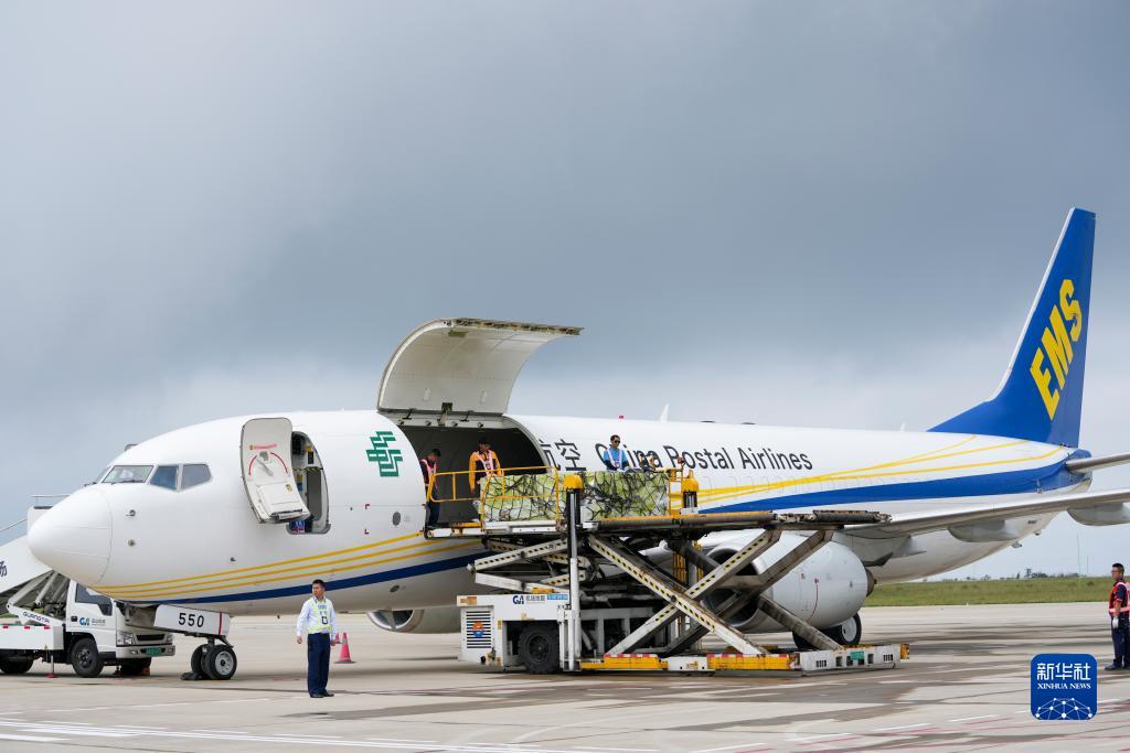 6月28日,重慶巫山機場(chǎng)停機坪上,機場(chǎng)工作人員在為第二季“脆李航班”首趟貨機裝載新上市的巫山脆李。