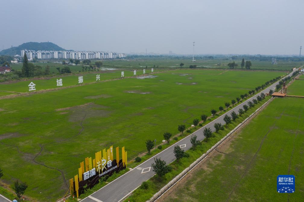 7月19日拍攝的湖州市東林鎮東華村經(jīng)過(guò)萬(wàn)畝方集中連片整治后的連片農田,田里種植了水稻(無(wú)人機照片)。