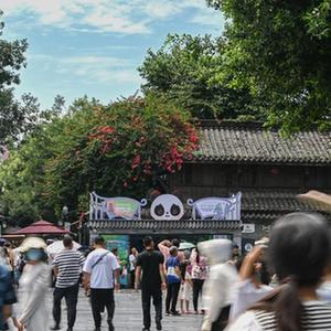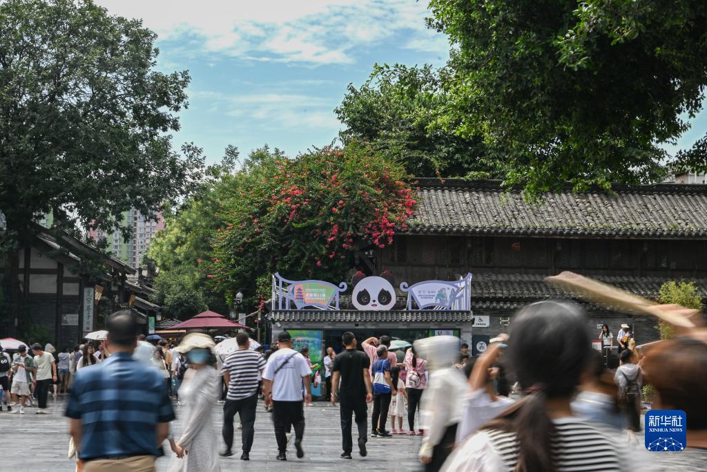 這是7月14日拍攝的開(kāi)在成都市寬窄巷子景區的一家成都大運會(huì )特許商品零售店。