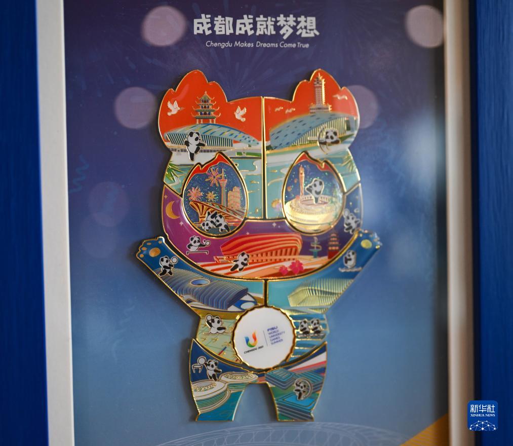 這是7月18日拍攝的成都大運會(huì )紀念徽章。