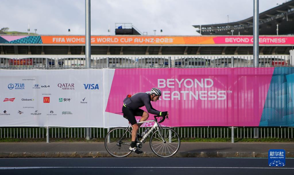 7月17日,在新西蘭奧克蘭,一名騎行者騎車(chē)經(jīng)過(guò)伊甸公園球場(chǎng)。