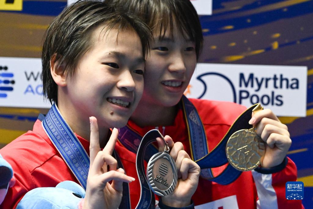 當日,在日本福岡舉行的2023年世界游泳錦標賽女單10米跳臺決賽中,中國選手陳芋汐、全紅嬋分別以457.85分與445.60分的成績(jì)包攬冠亞軍。