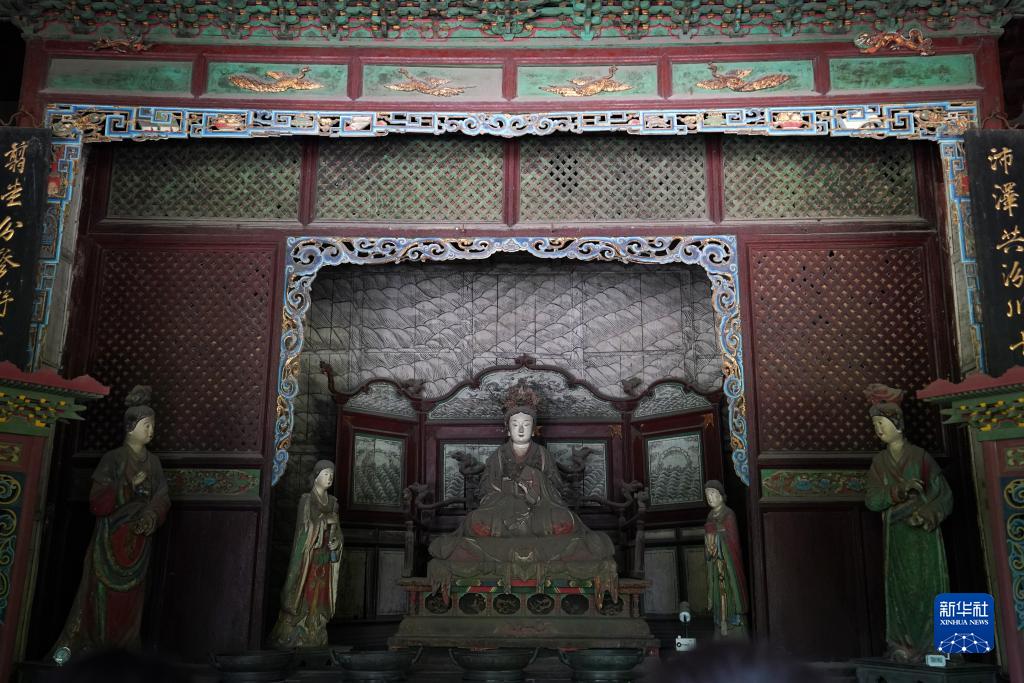 晉祠圣母殿內的宋代塑像(7月4日攝)。