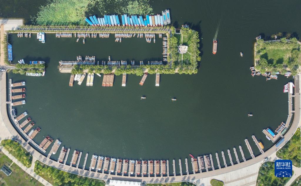 這是7月19日拍攝的白洋淀旅游碼頭(無(wú)人機照片)。