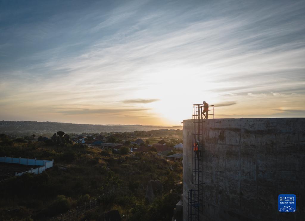 6月12日,凱爾文與同事在坦桑尼亞姆萬(wàn)扎省布斯韋盧檢查供水項目高位蓄水池(無(wú)人機照片)。