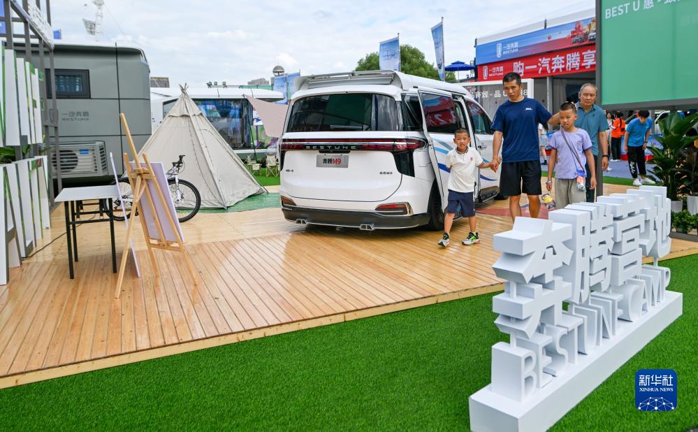 7月17日,參觀(guān)者在長(cháng)春汽博會(huì )上的房車(chē)沉浸式體驗區參觀(guān)。