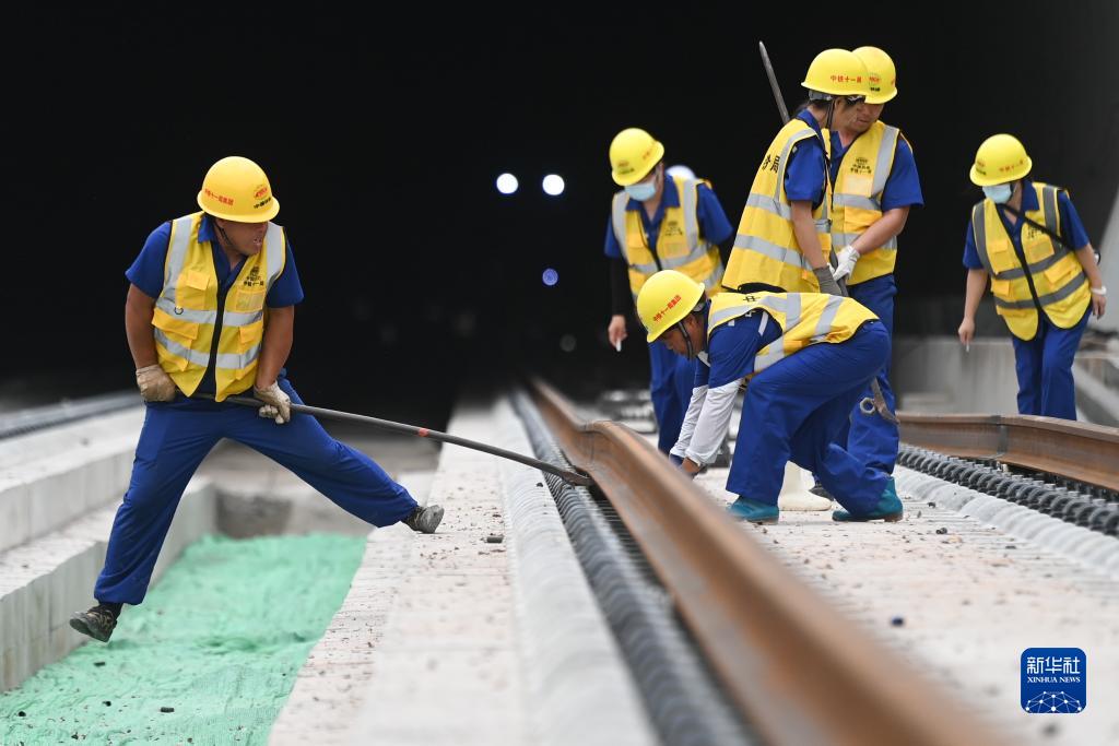 7月20日,中鐵十一局施工人員在杭溫鐵路上進(jìn)行鋪軌作業(yè)。