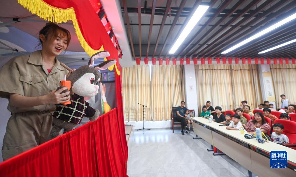 7月20日,在嘉興市秀洲區新塍鎮陡門(mén)村文化禮堂,秀湖音樂(lè )廳小橙堡兒童藝術(shù)劇團在演出兒童劇《紅鼻頭哥哥和小木偶們》。