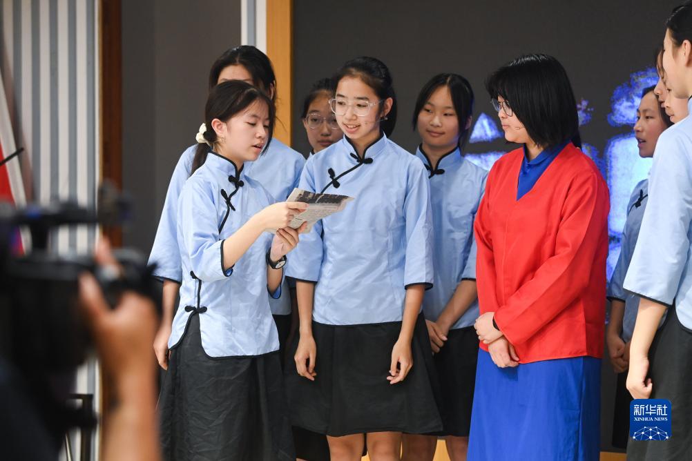 7月20日,在嘉興市秀洲區新塍鎮陡門(mén)村文化禮堂,秀湖學(xué)校易之林劇社在表演舞臺劇《紅巖魂》。