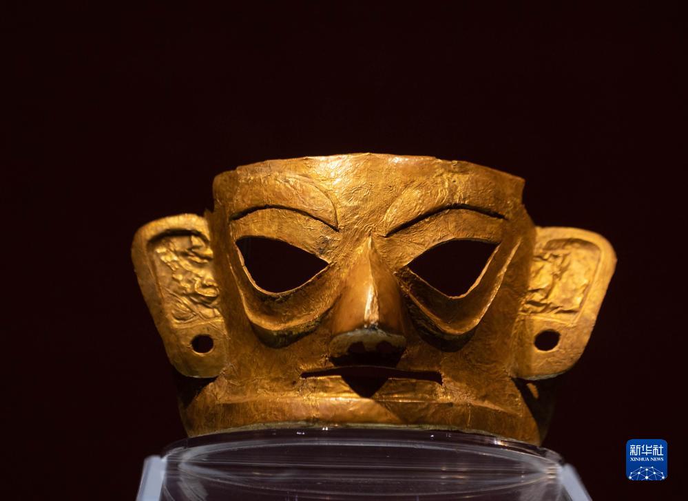這是金沙遺址里展呈的金面具(7月19日攝)。