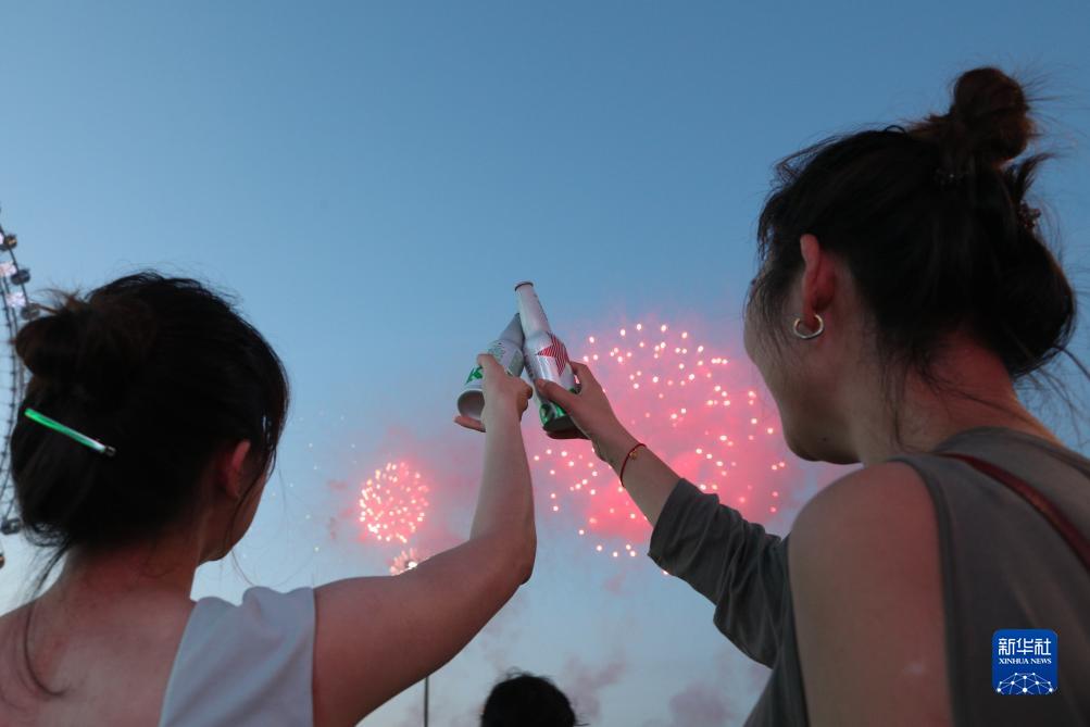 7月20日,人們在哈爾濱國際啤酒節現場(chǎng)觀(guān)看煙花秀。