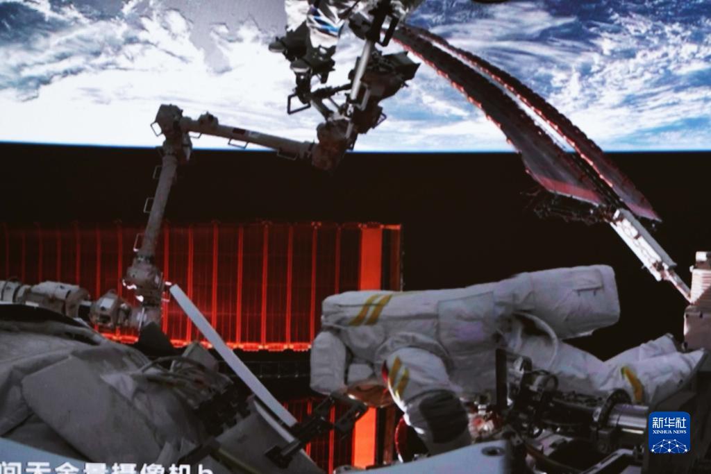 這是在北京航天飛行控制中心拍攝的神舟十六號航天員朱楊柱開(kāi)展艙外操作的畫(huà)面(7月20日攝)。