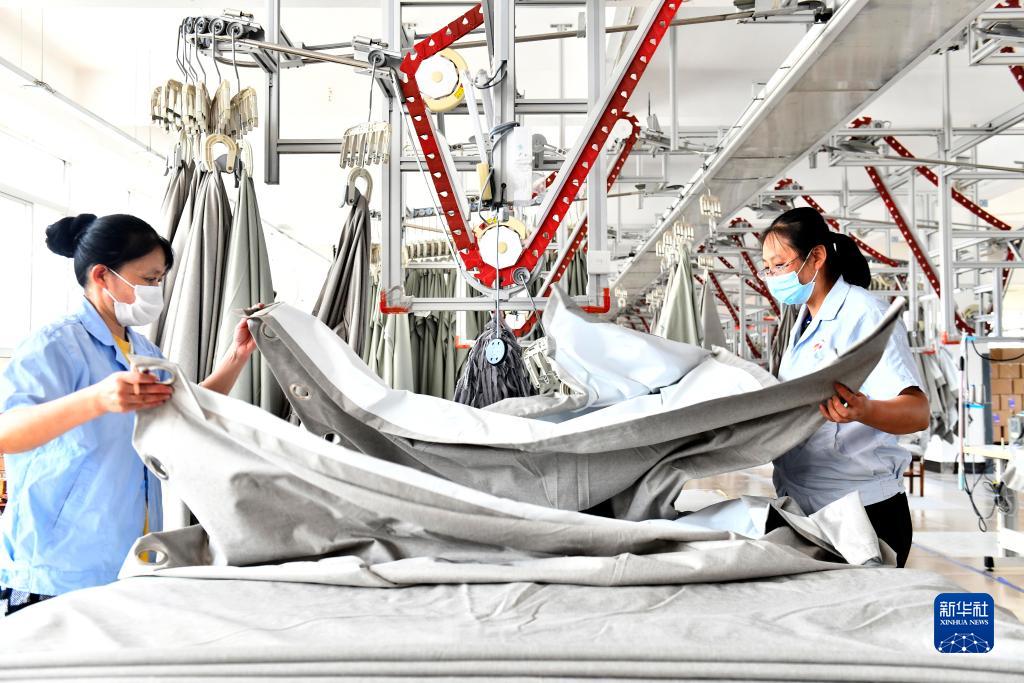 7月21日,在位于威海市文登區的山東銀豐家用紡織品有限公司,工人在加工家紡產(chǎn)品。