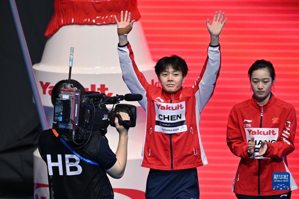 當日,在日本福岡舉行的2023年世界游泳錦標賽跳水女子單人三米板決賽中,中國選手陳藝文、昌雅妮分別以359.50分和341.50分的成績(jì)包攬冠亞軍。