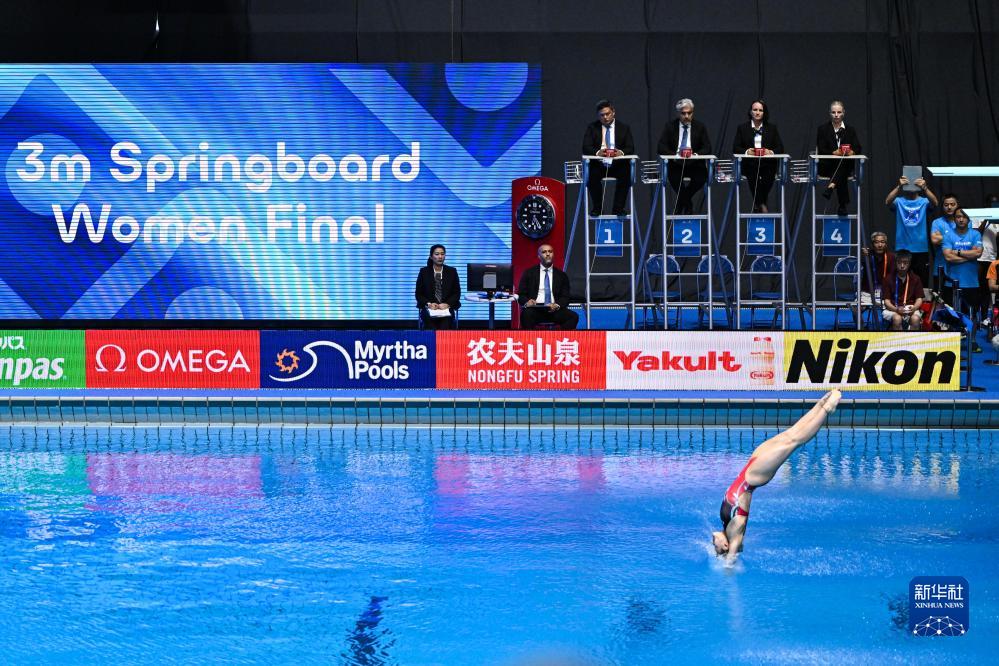 當日,在日本福岡舉行的2023年世界游泳錦標賽跳水女子單人三米板決賽中,中國選手陳藝文、昌雅妮分別以359.50分和341.50分的成績(jì)包攬冠亞軍。
