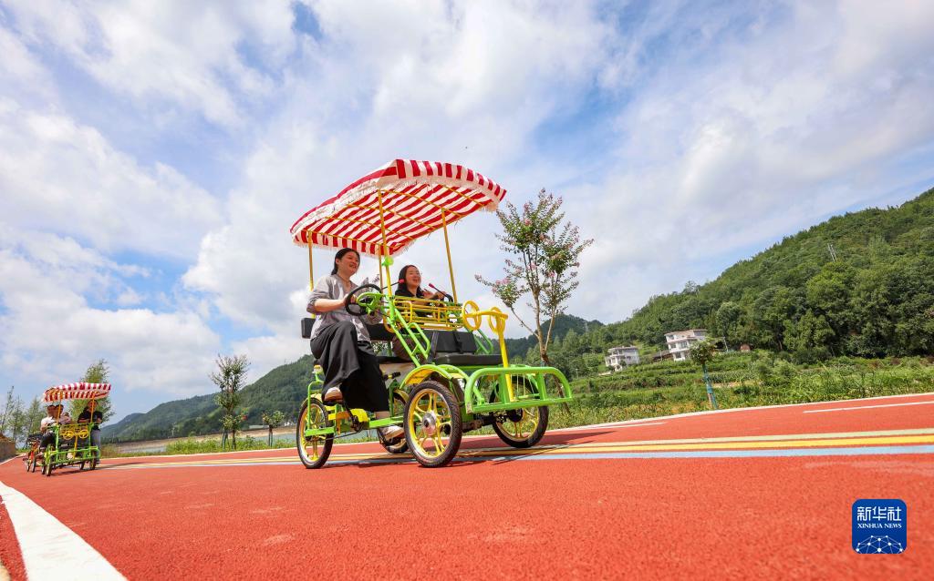7月21日,游客在貴州省銅仁市印江土家族苗族自治縣云上天池景區騎行。