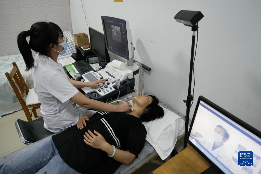 7月21日,河北省灤州市古馬鎮衛生院的醫生通過(guò)遠程會(huì )診平臺與灤州市中醫醫院的醫生共同診斷患者病情。