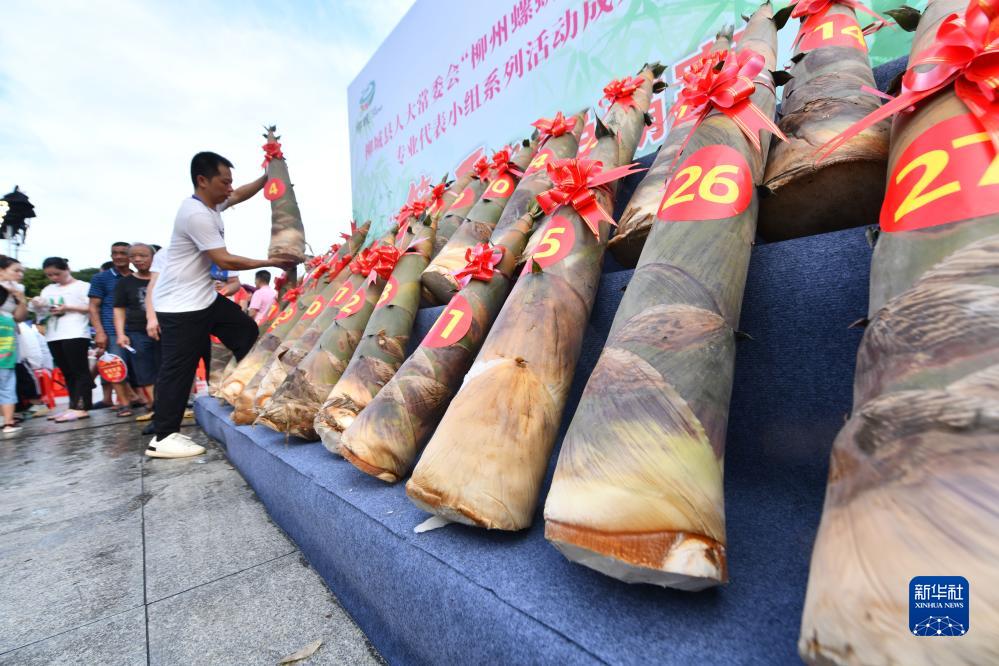 當日,廣西柳州市柳城縣舉辦“筍王”爭霸賽,全縣眾多種植大戶(hù)參賽,評委按筍的重量、大小以及參賽選手剝筍的速度和質(zhì)量等進(jìn)行綜合評定。比賽旨在促進(jìn)農戶(hù)交流,推動(dòng)竹筍產(chǎn)業(yè)高質(zhì)量發(fā)展。
