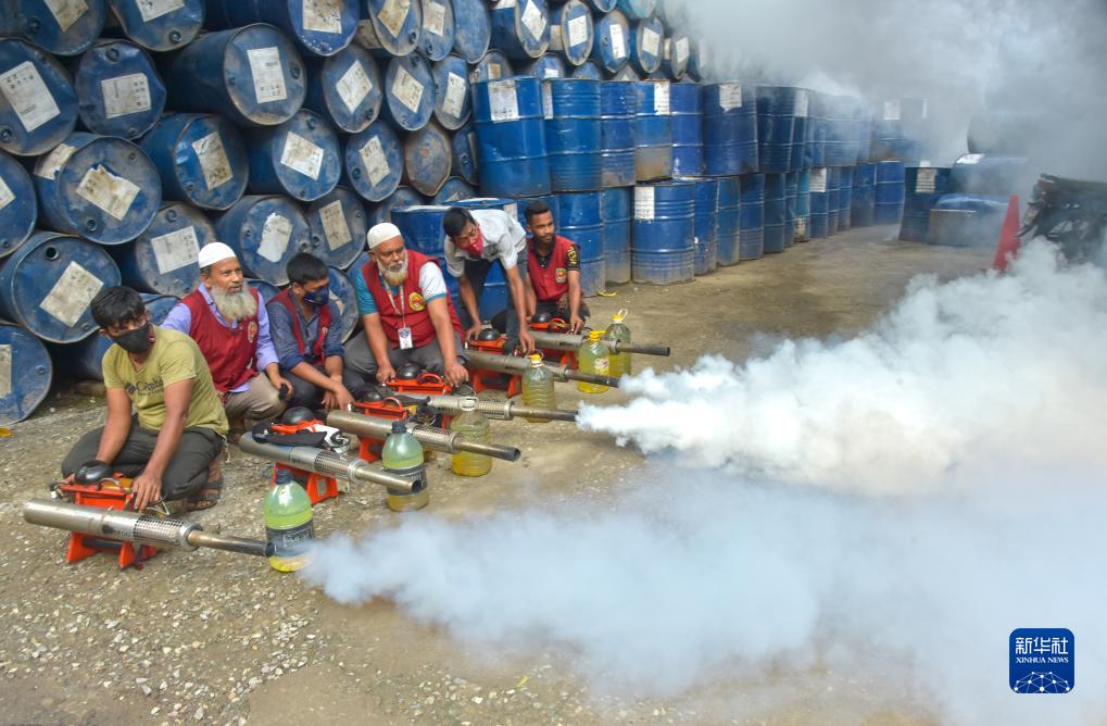 7月16日,工作人員在孟加拉國達卡進(jìn)行滅蚊工作,以預防登革熱。