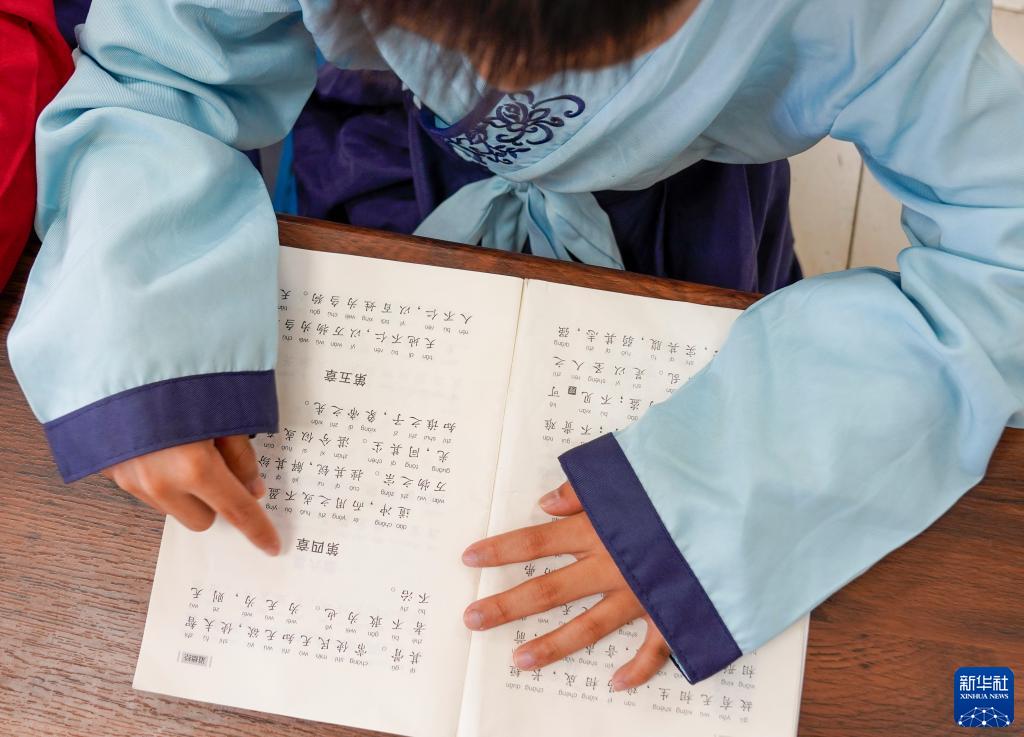 7月22日,萬(wàn)州區恒合土家族鄉一個(gè)研學(xué)基地內,參加暑期避暑研學(xué)活動(dòng)的學(xué)生在誦讀經(jīng)典古詩(shī)詞。