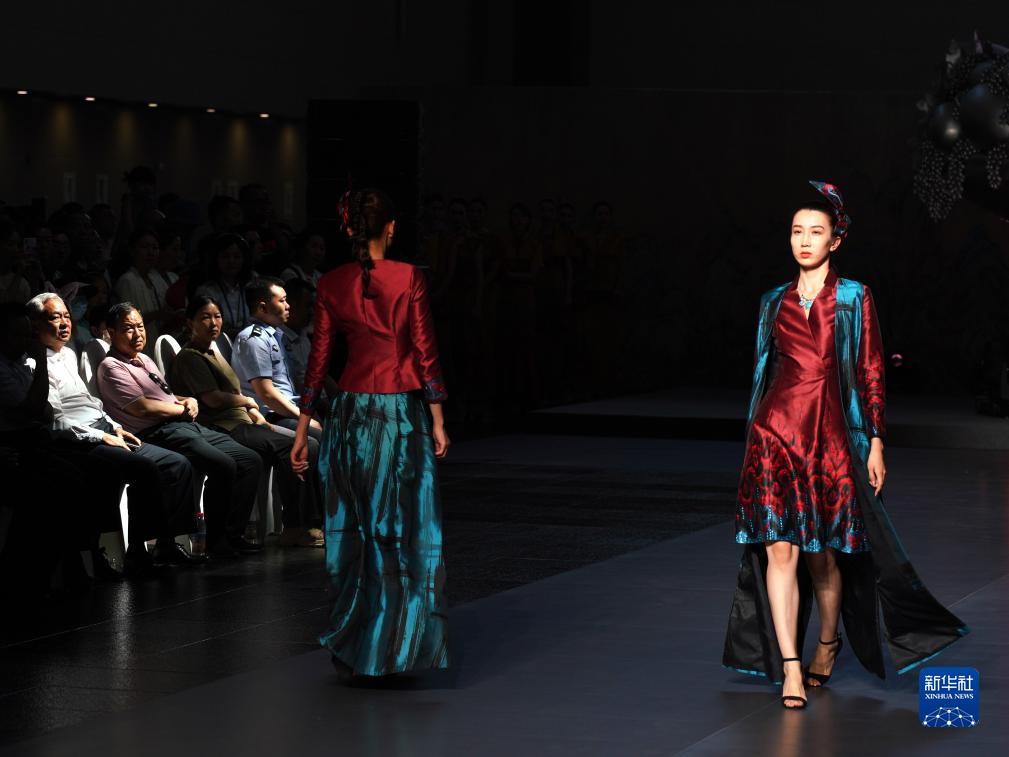 在時(shí)尚秀現場(chǎng),模特展示服飾作品(7月22日攝)。