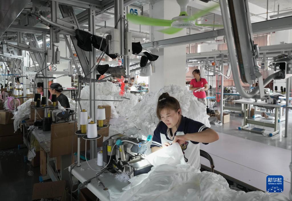 7月23日,工人在肅寧縣一家針紡服裝企業(yè)生產(chǎn)車(chē)間工作。