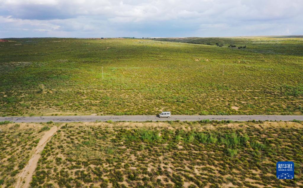 夏日時(shí)節,內蒙古自治區杭錦旗境內的穿沙公路綠意盎然,綠色沿著(zhù)道路前行,并向兩旁的沙地鋪展,猶如一條條“綠色動(dòng)脈”在庫布其沙漠中綿延。