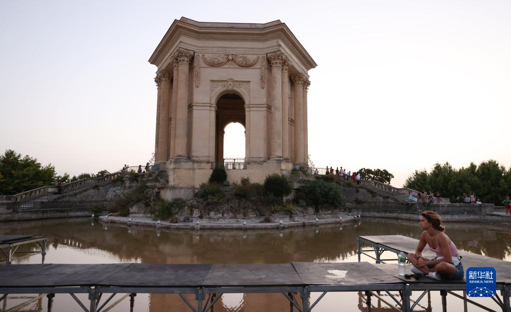 這是法國蒙彼利埃佩魯皇廣場(chǎng)上的水塔(7月17日攝)。