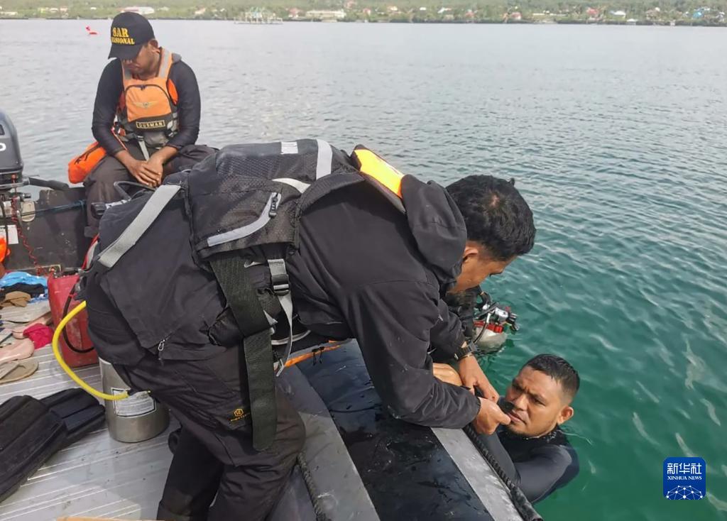 7月24日,救援人員在印度尼西亞蘇拉威西省附近海域進(jìn)行搜救工作。