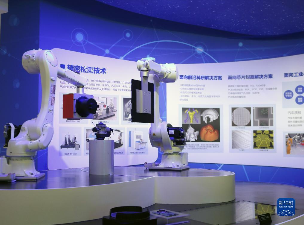 這是7月24日在中科新經(jīng)濟科創(chuàng )園展廳拍攝的精密檢測設備模型。