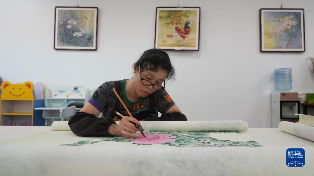 7月24日,畫(huà)師在山東省巨野縣書(shū)畫(huà)院繪制工筆畫(huà)作品。
