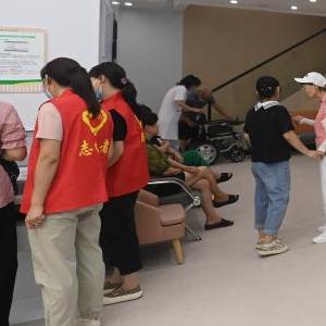 7月25日,居民(右)在諸暨市浣東街道東盛社區衛生服務(wù)站的智慧藥房?jì)茸灾鷾y量體重。