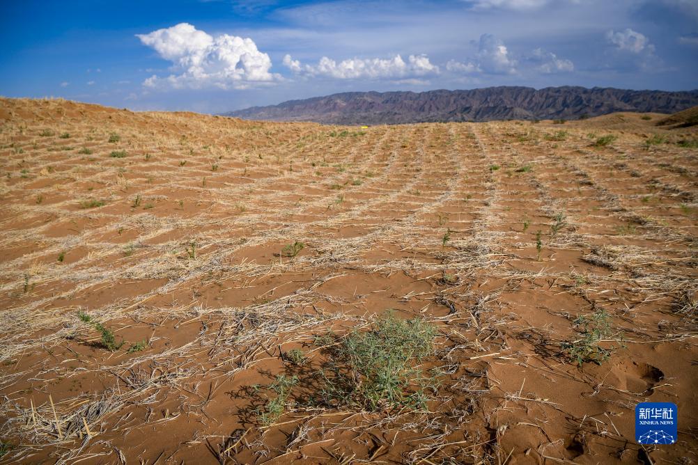 位于寧夏中衛市境內的一處沙漠,草方格已將風(fēng)沙固定,地表長(cháng)出植被(7月19日攝)。寧夏中衛市是草方格沙障的起源地,該技術(shù)由中國科學(xué)院沙坡頭沙漠研究試驗站同中衛鐵路固沙林場(chǎng)職工、當地群眾經(jīng)過(guò)多年的探索和實(shí)踐總結而成。