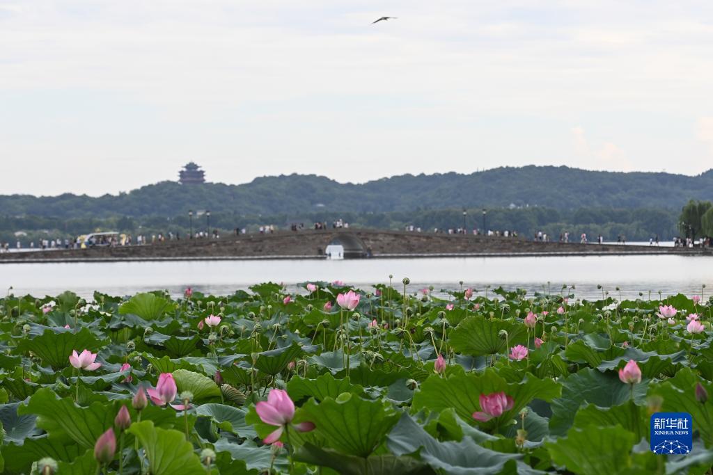 時(shí)值盛夏,杭州西湖景區荷花競相綻放,呈現出“接天蓮葉無(wú)窮碧,映日荷花別樣紅”的美麗景象。