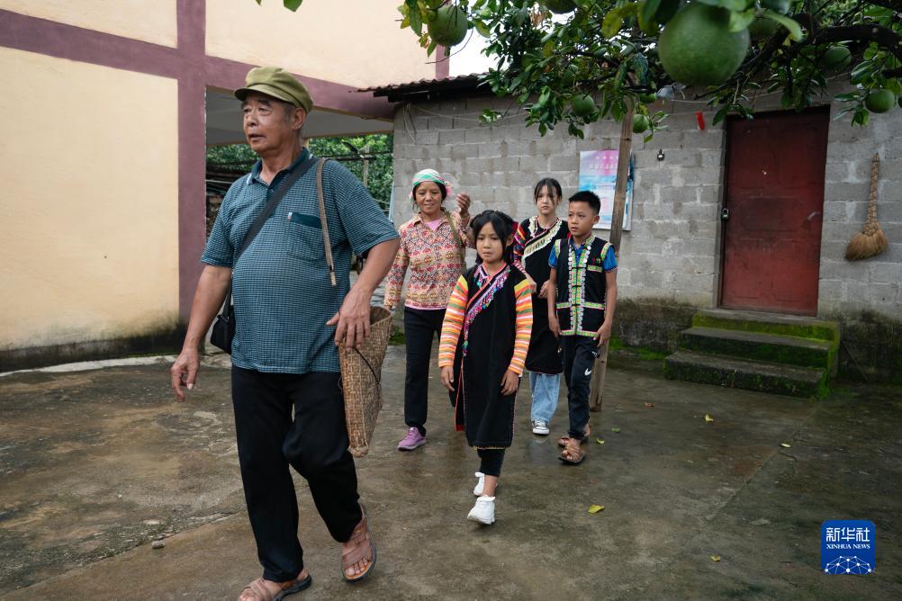 7月23日,張普忠(左一)帶領(lǐng)妻子和孫輩出門(mén)準備進(jìn)山。新華社記者 陳欣波 攝
