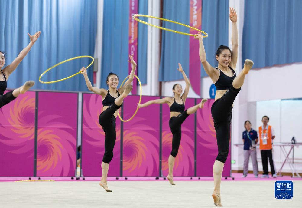 7月25日,中國大學(xué)生藝術(shù)體操隊的選手們在成都體育學(xué)院體操館訓練。
