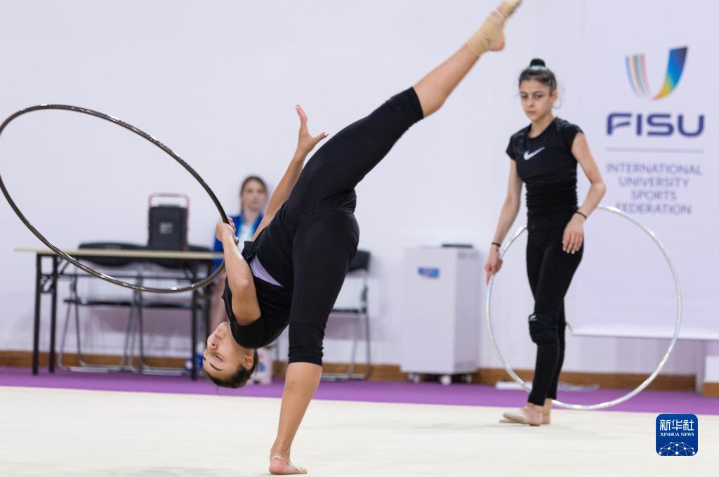 7月25日,阿塞拜疆大學(xué)生藝術(shù)體操隊的選手在成都體育學(xué)院體操館訓練。