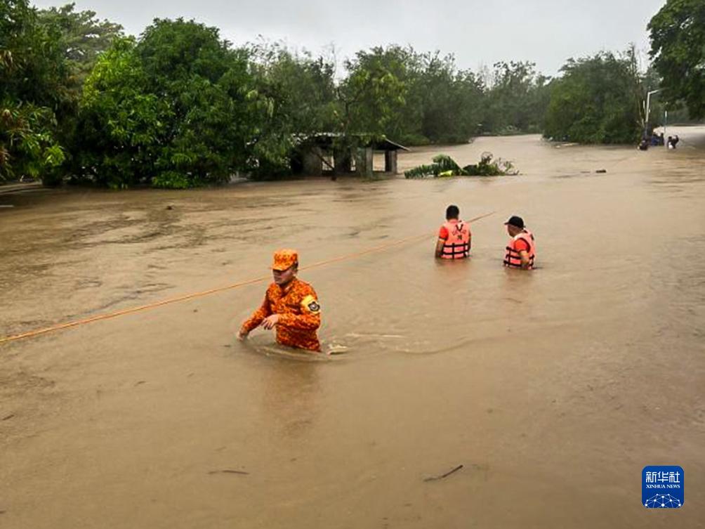 這張菲律賓海岸警衛隊發(fā)布的照片顯示,7月26日,救援人員在菲律賓呂宋島的北伊羅戈省冒著(zhù)洪水參與救援工作。