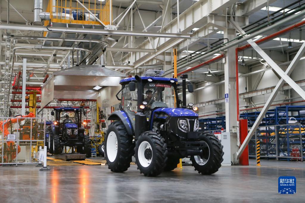 7月26日,在位于濰坊市的濰柴雷沃智慧農業(yè)科技股份有限公司,工人駕駛一輛拖拉機駛下生產(chǎn)線(xiàn)。