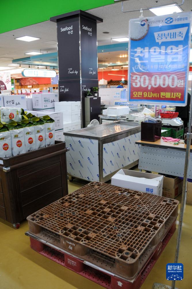 7月26日,韓國首爾一家超市的政府儲備海鹽售賣(mài)處已經(jīng)銷(xiāo)售一空。