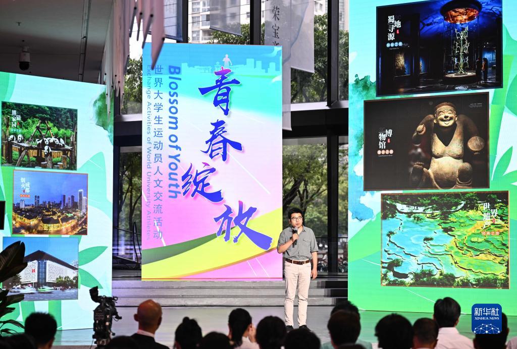 7月26日,嘉賓在世界大學(xué)生運動(dòng)員人文交流活動(dòng)啟動(dòng)儀式上進(jìn)行文化推介。