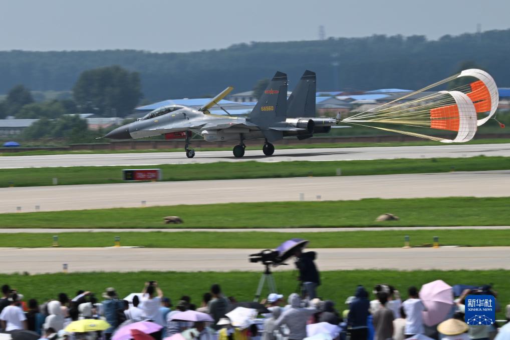 7月26日,在2023年空軍航空開(kāi)放活動(dòng)·長(cháng)春航空展上,殲-11BS模擬空戰歸來(lái)。