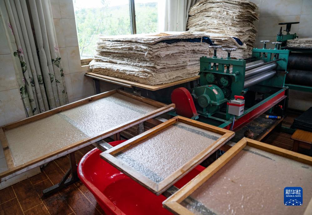 這是制作完成后正在晾曬的藏紙(7月26日攝)。